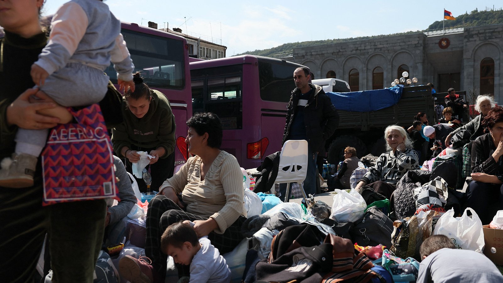 En su huida de las tropas azerbaiyanas por la única vía que conecta este enclave con la república de Armenia, los refugiados tomaron el lunes un depósito para proveerse de combustible