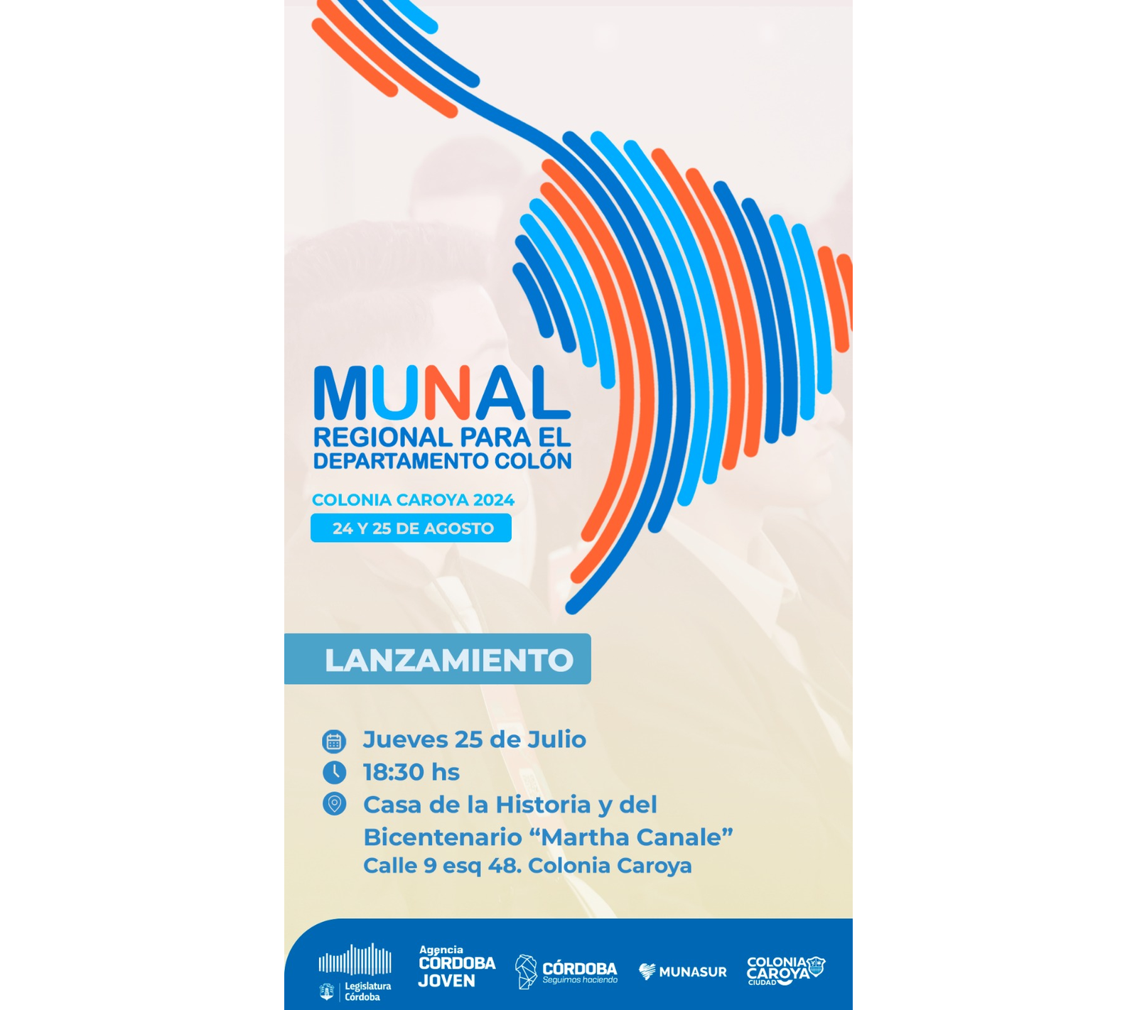 La Municipalidad de Colonia Caroya invita al acto de presentación y lanzamiento de la nueva edición del Modelo de Naciones Latinoamericanas (Munal).