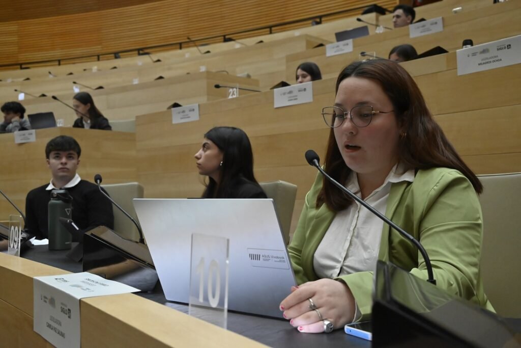 Luego, los “legisladores” y “legisladoras” por un día, debatieron en torno al eje “Ley de Formación e Internacionalización del Talento Cordobés en Economía del Conocimiento”.