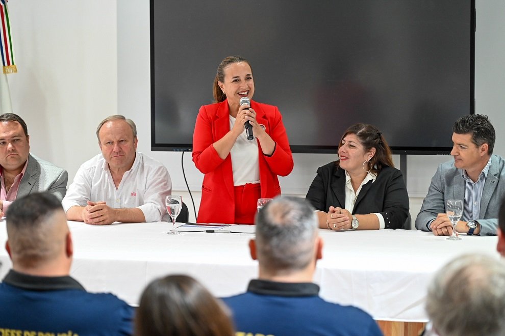 Prunotto fue recibida por la intendenta local, Romina Aguirre, y estuvo acompañada por el legislador departamental, Ariel Grich, y el secretario de Seguridad de la Provincia, Ángel Bevilacqua, entre otras autoridades provinciales y municipales.