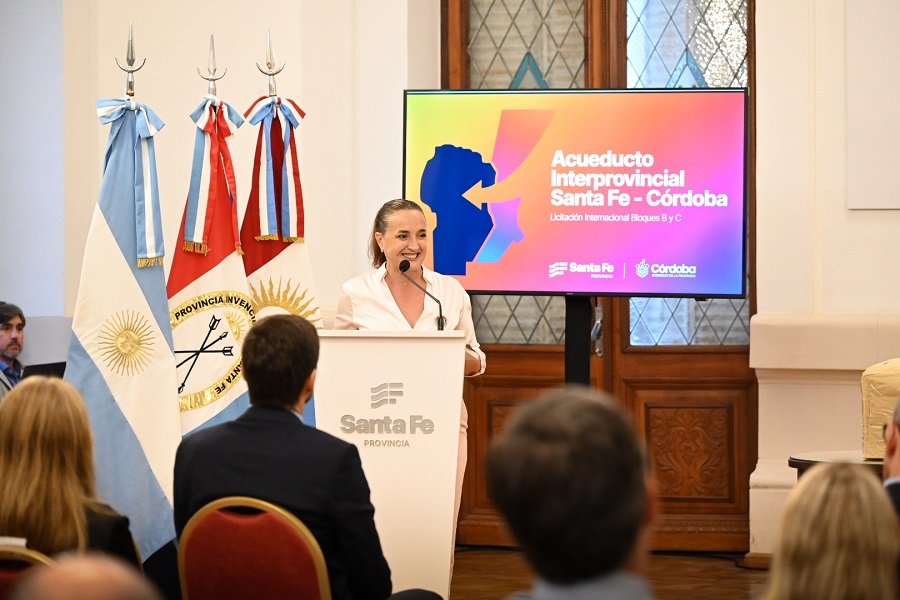 La vicegobernadora de Córdoba, Myrian Prunotto, participó en la ciudad de Santa Fe del acto de apertura de sobres correspondiente a los bloques B y C de la Fase I del Acueducto Interprovincial Santa Fe-Córdoba, una de las obras hídricas más relevantes del país.