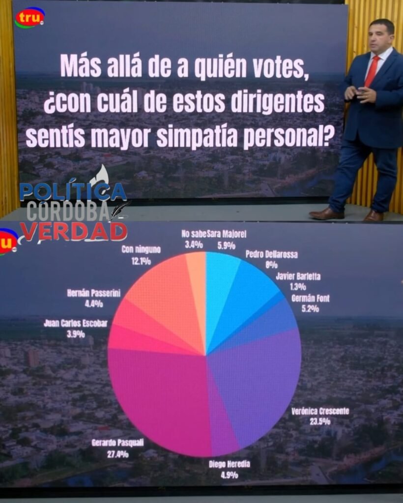 También se consultó sobre la empatía personal con los dirigentes de la ciudad y los encuestados respondieron sentirse más cercanos a Gerardo Pasquali de LLA y Verónica Crescente, ex candidata a intendenta. El peor porcentaje se lo llevaron los otros dos «fuertes», Majorel con un 5,9% y Dellarossa con un 8%. Aquí también aparecen otros dirigentes con Herman Passerini, Diego Heredia y Javier Barletta.