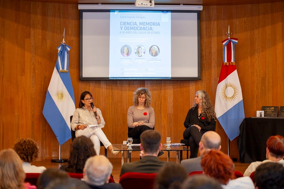 Alrededor de las 18, y a través del ciclo de conferencias “Construyendo diálogos”, la Legislatura fue escenario del conversatorio “Ciencia, memoria y democracia: a 50 años del golpe de Estado”. Se trató de un espacio de reflexión colectiva que propuso articular los aportes de la ciencia social con los procesos de memoria y la construcción democrática en Argentina.