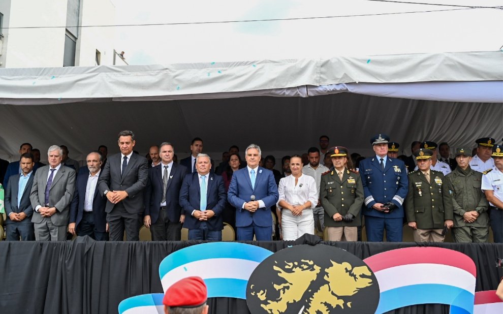 La ceremonia se desarrolló sobre la avenida San Martín, donde se montó el palco principal para el homenaje, en el marco del 44° aniversario de la gesta de Malvinas.
